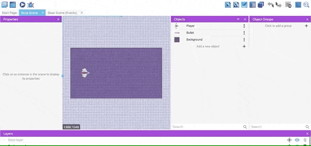 We'll now create an object group called "Enemies". This will be useful in events, to refer to all the objects in the group without repeating events for each object.